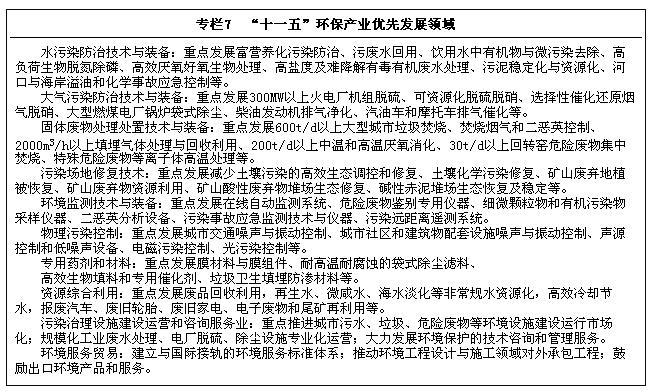 2.積極促進環保產業發展。 以環境保護重點工程為需求,以環保示范工程為依托,以標準化、系列化、國產化、現代化為導向,自主創新和引進消化吸收相結合,大力發展環保裝備制造業。 以環境影響評價、環境工程服務、環境技術研發與咨詢、環境風險投資為重點,以市場化為主體,積極發展環保服務業。 制定發展規劃,推進技術進步,加強行業自律,規范市場行為,促進公平競爭,推動環保產業健康發展。 加大對外開放,實施引進來、走出去戰略,支持各類所有制企業進入環保產業。培育一批具有自主品牌、核心技術能力強、市場占有率高、能夠提供較多就業機會的優勢企業和企業集團,使環保產業成為國民經濟的新興支柱產業。