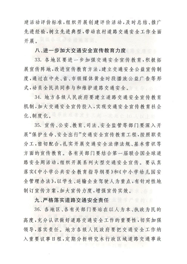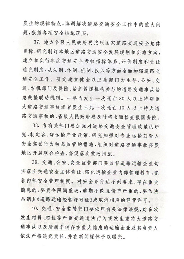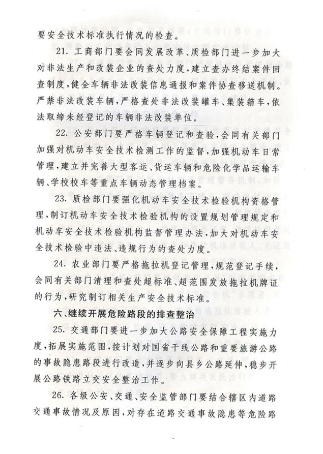 三、加強檢查指導。各地、各有關部門要對貫徹落實國辦發〔2007〕35號文情況加強檢查指導,發現問題及時整改;對工作措施不落實,發現重大安全隱患不及時整改的,要追究相關責任人的責任。各地級以上市貫徹落實國辦發〔2007〕35號文情況要于2007年12月15日前書面報省預防道路交通事故聯席會議辦公室。