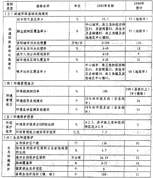 廣東省“十五”期間主要環(huán)境保護(hù)控制指標(biāo)
