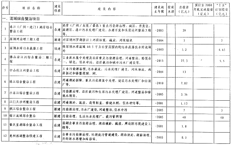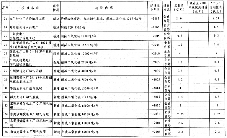 廣東省環(huán)境保護(hù)“十五”重大建設(shè)項(xiàng)目表