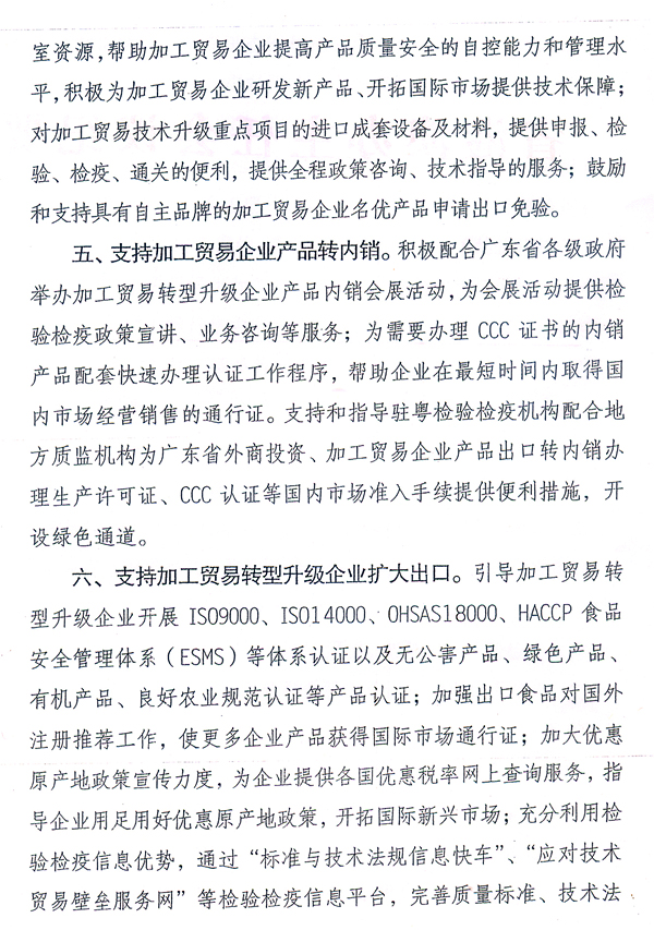 轉(zhuǎn)發(fā)國(guó)家質(zhì)檢總局關(guān)于促進(jìn)廣東省加工貿(mào)易 轉(zhuǎn)型升級(jí)的檢驗(yàn)檢疫措施的通知