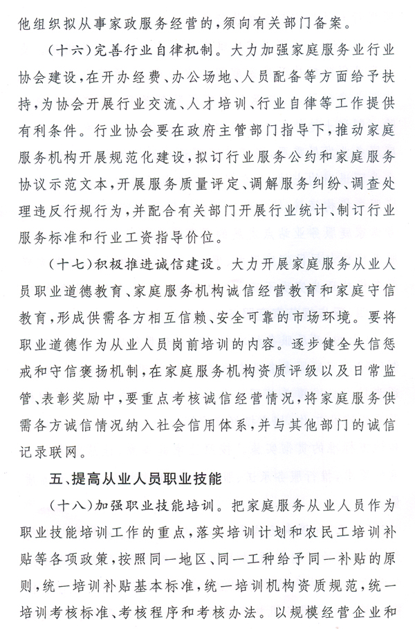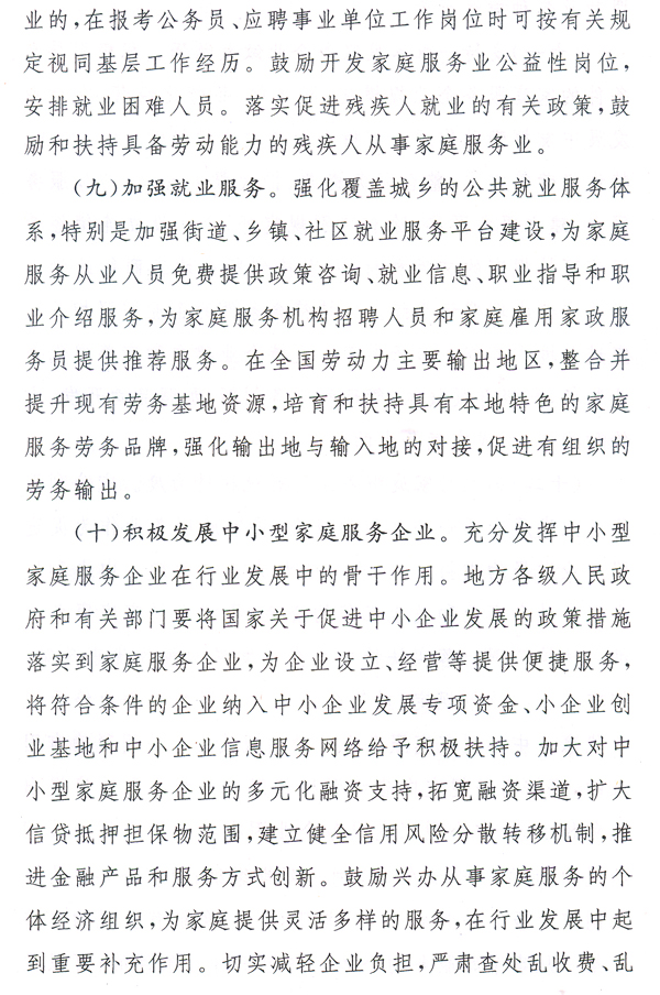 大力發展家庭服務業,加快市場化、產業化和社會化,形成惠及城鄉居民的比較健全的家庭服務體系,有利于擴大內需、增加就業、改善民生,對于提高人民生活質量、促進社會和諧、全面建設小康社會具有重要作用。各地、各有關部門要高度重視,按照國辦發〔2010〕43號文提出的要求,完善和落實各項政策措施,大力推動家庭服務業健康發展。省人力資源社會保障廳要會同有關部門,抓緊研究制訂我省“十二五”時期家庭服務業發展規劃,起草貫徹落實國辦發〔2010〕43號文的具體實施意見,報省政府批準后組織實施。各地要在摸清本地區家庭服務業發展現狀的基礎上,結合實際制訂出臺扶持家庭服務業發展的配套政策措施。