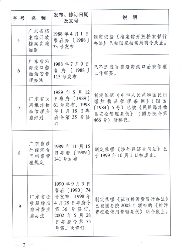 經2010年12月7日廣東省人民政府第十一屆65次常務會議通過,決定廢止《廣東省營業性桌球場(室)管理暫行辦法》等20項政府規章(目錄附后),現予公布,自公布之日起施行。