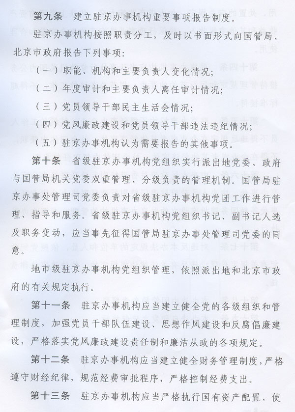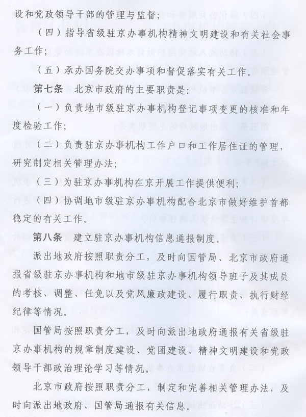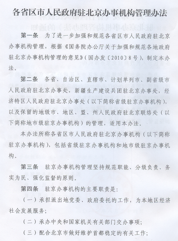 ? 轉發(fā)國務院機關事務管理局北京市人民政府 關于印發(fā)各省區(qū)市人民政府駐北京 辦事機構管理辦法的通知 ? 各地級以上市人民政府,順德區(qū)人民政府,省直有關單位: 經(jīng)省人民政府同意,現(xiàn)將國務院機關事務管理局、北京市人民政府《關于印發(fā)〈各省區(qū)市人民政府駐北京辦事機構管理辦法〉的通知》(國管辦〔2011〕318號,以下簡稱《管理辦法》)轉發(fā)給你們,結合我省實際提出如下意見,請一并貫徹執(zhí)行。 一、我省各駐京辦事機構要認真貫徹落實《管理辦法》的各項工作要求,切實做到規(guī)范職能、廉潔從政、務實為民,不斷強化公共服務和社會管理職能。要建立重要事項報告制度,健全黨的各級組織和管理制度,完善財務和資產(chǎn)管理制度,嚴格執(zhí)行黨政機關公務接待管理規(guī)定。要加強與國務院機關事務管理局、北京市人民政府的溝通協(xié)調(diào),努力在推動地區(qū)間協(xié)作、服務本地區(qū)經(jīng)濟社會發(fā)展、處置突發(fā)事件、維護首都穩(wěn)定等方面發(fā)揮更加積極有效的作用。 二、設有駐京辦事機構的地級以上市人民政府和順德區(qū)人民政府,要切實履行監(jiān)督管理職責,按照《管理辦法》的要求,研究制訂并組織實施加強和規(guī)范本地區(qū)駐京辦事機構管理的制度辦法,制訂和落實駐京辦事機構“三定”方案,嚴格執(zhí)行黨風廉政建設責任制,加強駐京辦事機構人事、預算、財務和資產(chǎn)管理,按規(guī)定開展相關審計工作。要及時向國務院機關事務管理局、北京市人民政府和省政府駐京辦通報駐京辦事機構人事工作、履行職責、黨風廉政建設等方面的情況。省政府辦公廳將另行制訂加強和規(guī)范駐京辦事機構管理的制度辦法。 三、省駐京辦要切實加強對我省各駐京辦事機構的指導、協(xié)調(diào)、監(jiān)督,統(tǒng)籌全省在京資源,形成工作合力;要按照《關于同意成立中共廣東省駐北京機構委員會的批復》(粵組黨〔2010〕14號)的要求,抓緊推進中共廣東省駐北京機構委員會組建工作。各駐京辦事機構要加強與省駐京辦的溝通聯(lián)系,及時將處置突發(fā)事件、信訪維穩(wěn)及廉政建設等方面的情況報送省駐京辦,并積極配合省駐京辦做好相關工作。 ? ? ? ? 廣東省人民政府辦公廳 二○一一年八月二十四日 ? ? ? ?