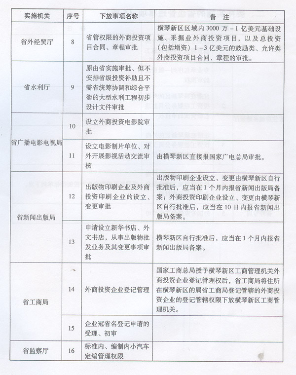 | 名稱: | 廣東省第一批調整由橫琴新區管理委員會實施的省級管理權限事項目錄 | ||