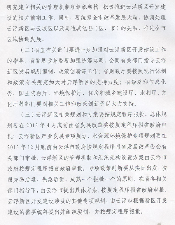 廣東省人民政府辦公廳關于印發云浮新區建設工作方案的通知