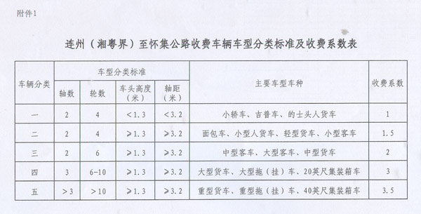 附件:1.連州(湘粵界)至懷集公路收費車輛車型分類標準及收費系數表
