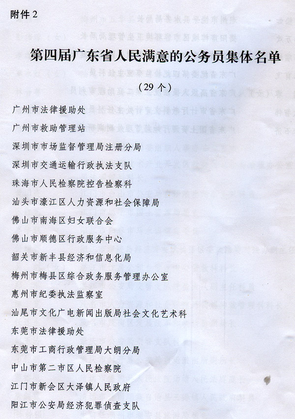 2.第四屆廣東省人民滿意的公務員集體名單(29個)
