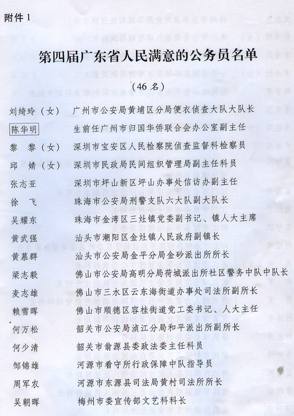 附件:1.第四屆廣東省人民滿意的公務員名單(46名)