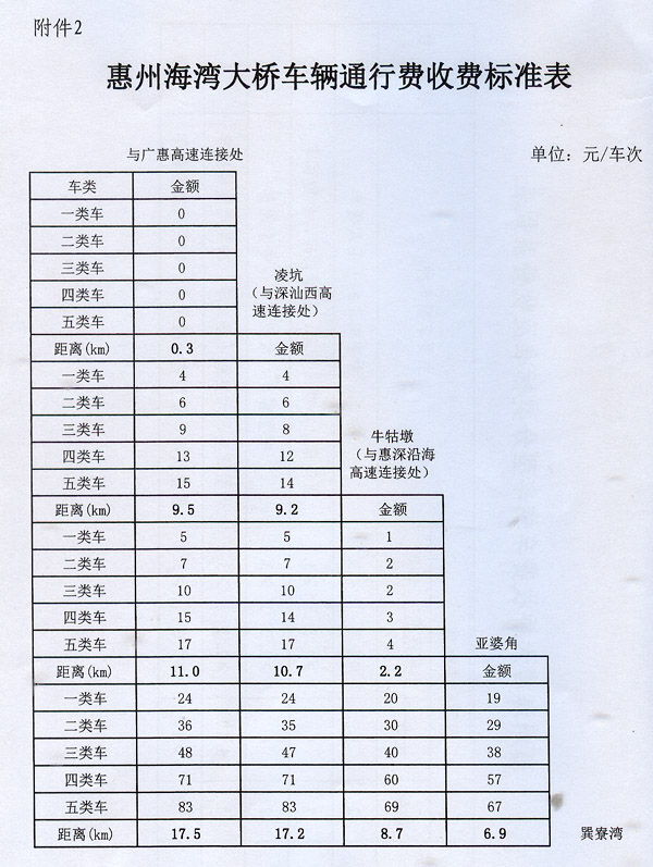 2.惠州海灣大橋車輛通行費(fèi)收費(fèi)標(biāo)準(zhǔn)表 ? ?
