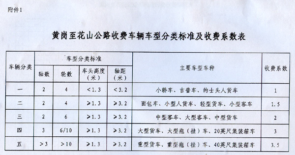 附件:1.黃崗至花山公路收費車輛車型分類標準及收費系數表