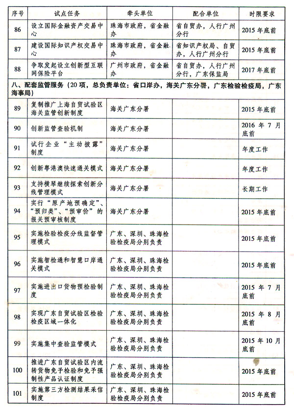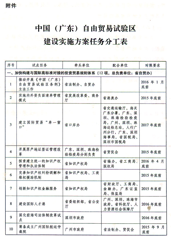 附件:中國(廣東)自由貿(mào)易試驗(yàn)區(qū)建設(shè)實(shí)施方案任務(wù)分工表