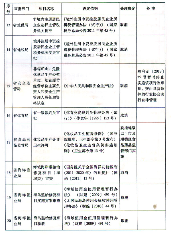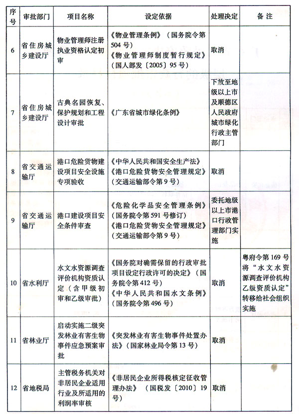 ? 廣東省人民政府關于取消和調(diào)整一批 行政審批項目等事項的決定