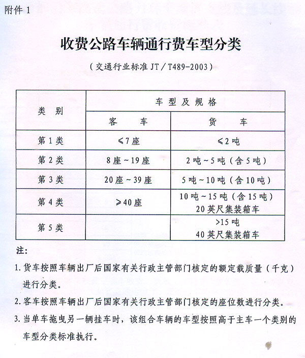 附件:1.收費公路車輛通行費車型分類(交通行業標準JT/T489-2003)