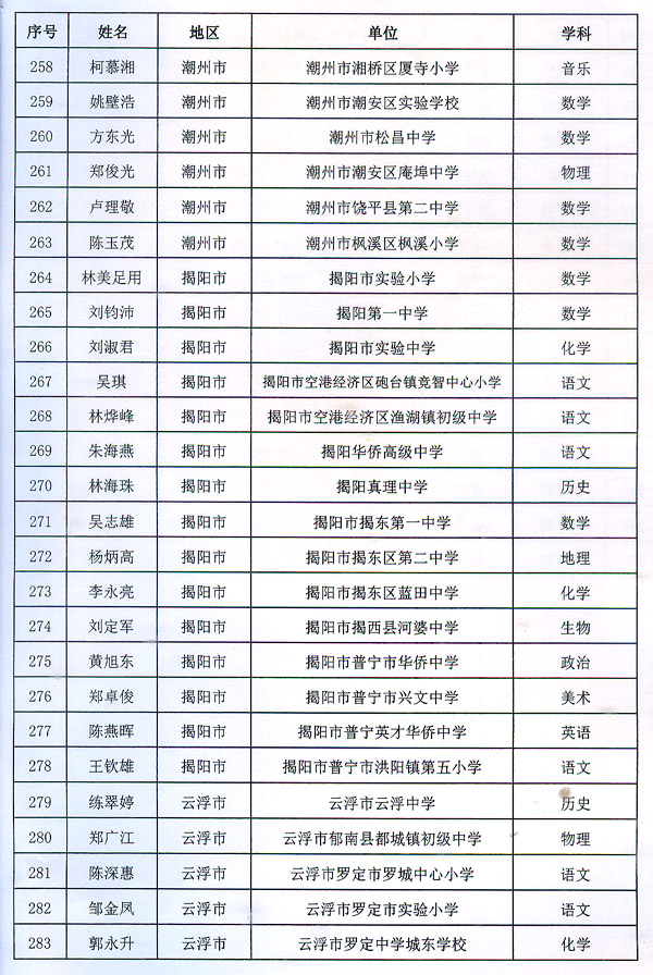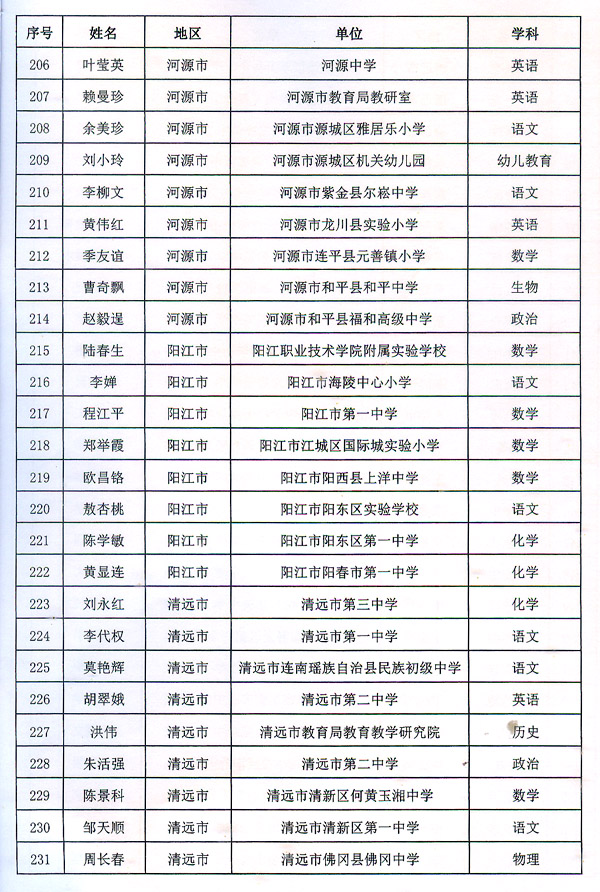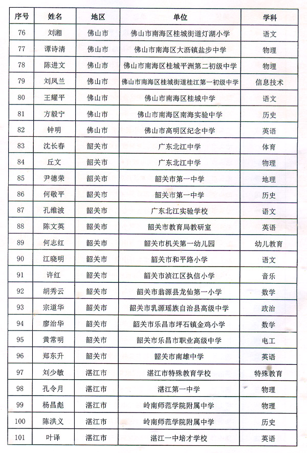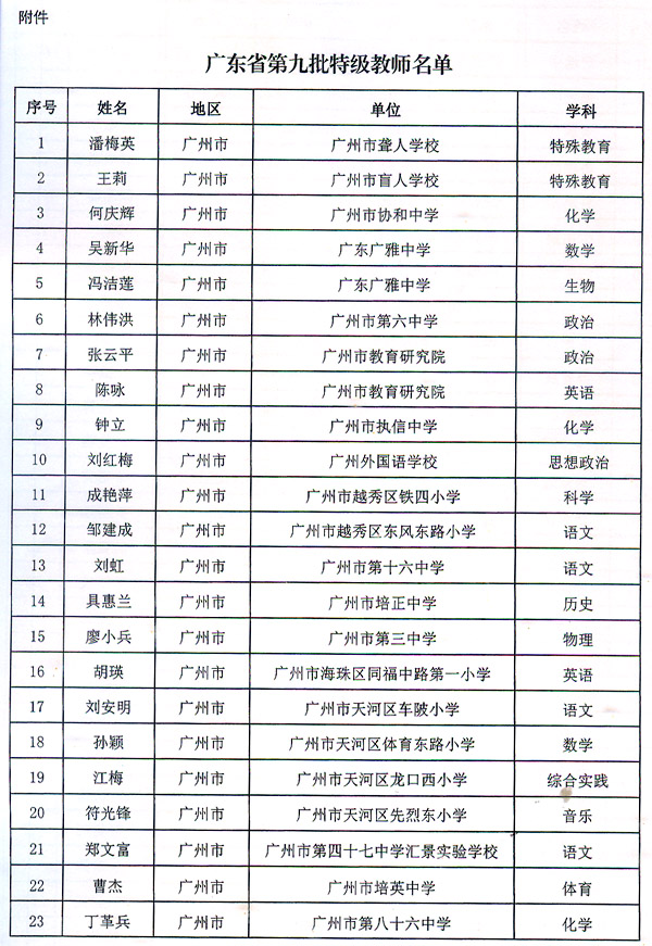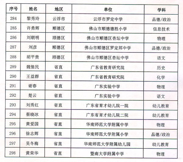 粵教師〔2016〕6號(hào)收悉。省人民政府同意潘梅英等298名同志為廣東省第九批特級(jí)教師。請(qǐng)按規(guī)定辦理有關(guān)手續(xù)。