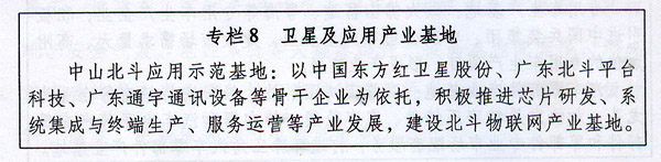 中山市加快建設(shè)北斗物聯(lián)網(wǎng)產(chǎn)業(yè)基地、北斗地基增強網(wǎng)絡(luò)系統(tǒng)、北斗應(yīng)用居家養(yǎng)老示范屋等項目,培育發(fā)展衛(wèi)星導(dǎo)航終端及位置服務(wù)、衛(wèi)星通信廣播、自主遙感信息獲取處理和運營服務(wù)以及北斗衛(wèi)星空間基準(zhǔn)授時產(chǎn)業(yè)鏈。