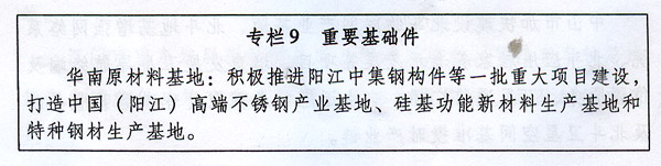 (九)重要基礎(chǔ)件。 以陽江市為主,重點發(fā)展精密軸承、高強度螺栓、精密齒輪和高檔液壓/氣動/密封件及系統(tǒng)等基礎(chǔ)件和通用部件的設(shè)計、制造和批量生產(chǎn)的關(guān)鍵技術(shù),以及大型和特殊零部件制造及加工技術(shù)。推廣清潔生產(chǎn)技術(shù),加強環(huán)境保護,建設(shè)華南地區(qū)重要基礎(chǔ)原材料生產(chǎn)基地,提升產(chǎn)品品質(zhì)。積極延伸產(chǎn)業(yè)鏈,引入相關(guān)企業(yè),規(guī)劃布局建設(shè)大型鑄鍛件、基礎(chǔ)部件、加工輔具和特種原材料等配套項目,提供先進裝備所需的關(guān)鍵基礎(chǔ)件和原材料。