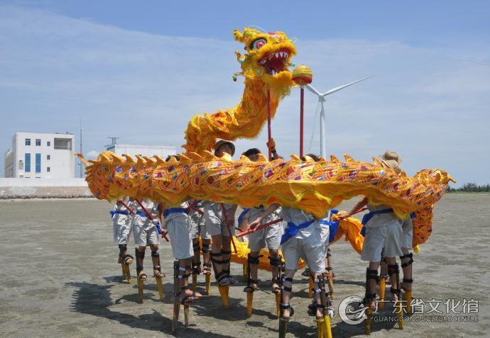 雷州南門高蹺龍舞即是高蹺舞龍,將高蹺、舞龍兩者合而為一,是富有地方特色的傳統(tǒng)舞蹈形式,現(xiàn)僅存于雷州市雷城南門市。高蹺龍舞成為民間慶典、祭祀活動(dòng)的一項(xiàng)傳統(tǒng)節(jié)目,從明永樂年間傳承至今已有600多年,民國雷州道南印務(wù)局黃景星編著《黃司令官平匪實(shí)紀(jì)·提燈會(huì)紀(jì)事》載有:“高蹺舞龍十三人,新歷元日。黃司令軍隊(duì)提燈。及前此民間賽會(huì),均有此物,故沿用之。”