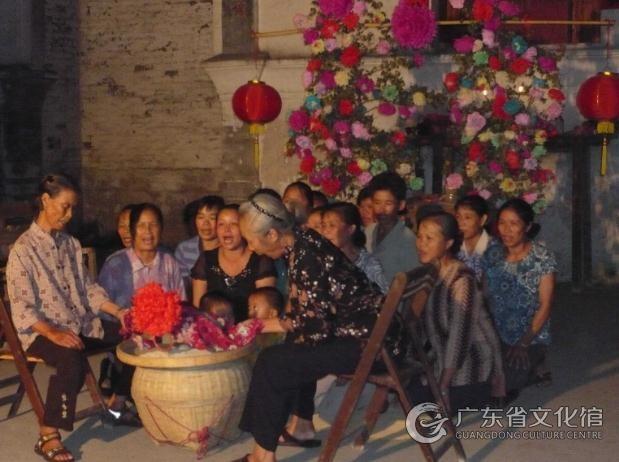 “月姐歌”以當地獨有的方言演唱,無伴奏清唱,有獨唱、合唱、對唱、表演唱等形式。歌詞涉及大量的農業生產、生活、氣節的內容,或敘事抒情,或敘述時令節氣,或描寫人間的冷暖世態,或歌唱愛情。“月姐歌”活動由準備活動、接月姐、迷月姐、送月姐四部分組成。其中迷月姐為活動重要環節,包括:“繡香包”調、“石榴打花”調、“睇龍船”調三大部分。“繡香包”調屬于宮調式,內容主要表達男女之間的純真愛情;“石榴打花”調屬于徵調式,最具代表性,內容多為表達人們對美好生活的向往;“睇龍船”調屬于羽調式,主要描寫人們賽龍舟時的熱鬧情景。