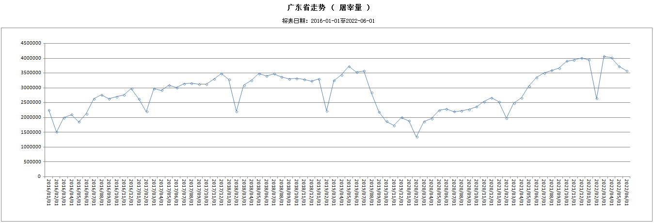 據(jù)對(duì)全省319家生豬定點(diǎn)屠宰企業(yè)跟蹤監(jiān)測(cè),6月份共屠宰生豬3579011頭,比5月份下降3.92%。