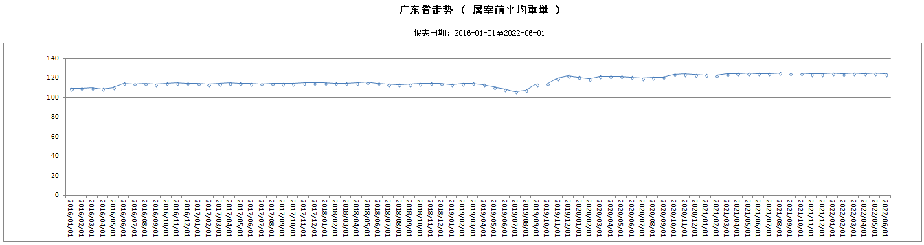6月份,跟蹤監(jiān)測(cè)的319家生豬定點(diǎn)屠宰企業(yè)生豬屠宰前平均重量124.29公斤,環(huán)比下降0.41%。