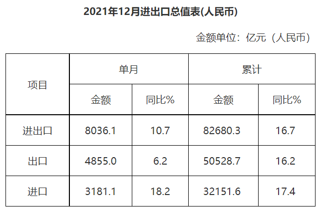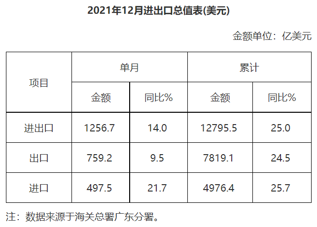 廣東省外貿(mào)進(jìn)出口總值表(2021年12月)