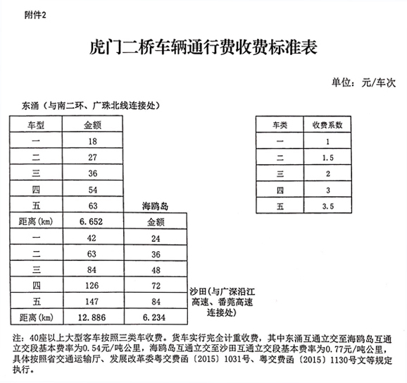 2.虎門二橋車輛通行費(fèi)收費(fèi)標(biāo)準(zhǔn)表