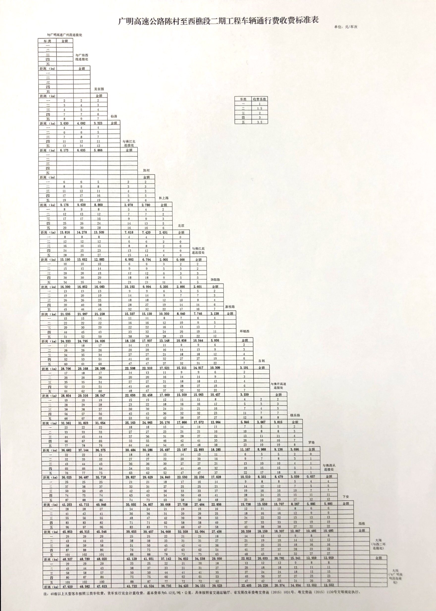 2.?廣明高速公路陳村至西樵段二期工程車輛通行費收費標準表