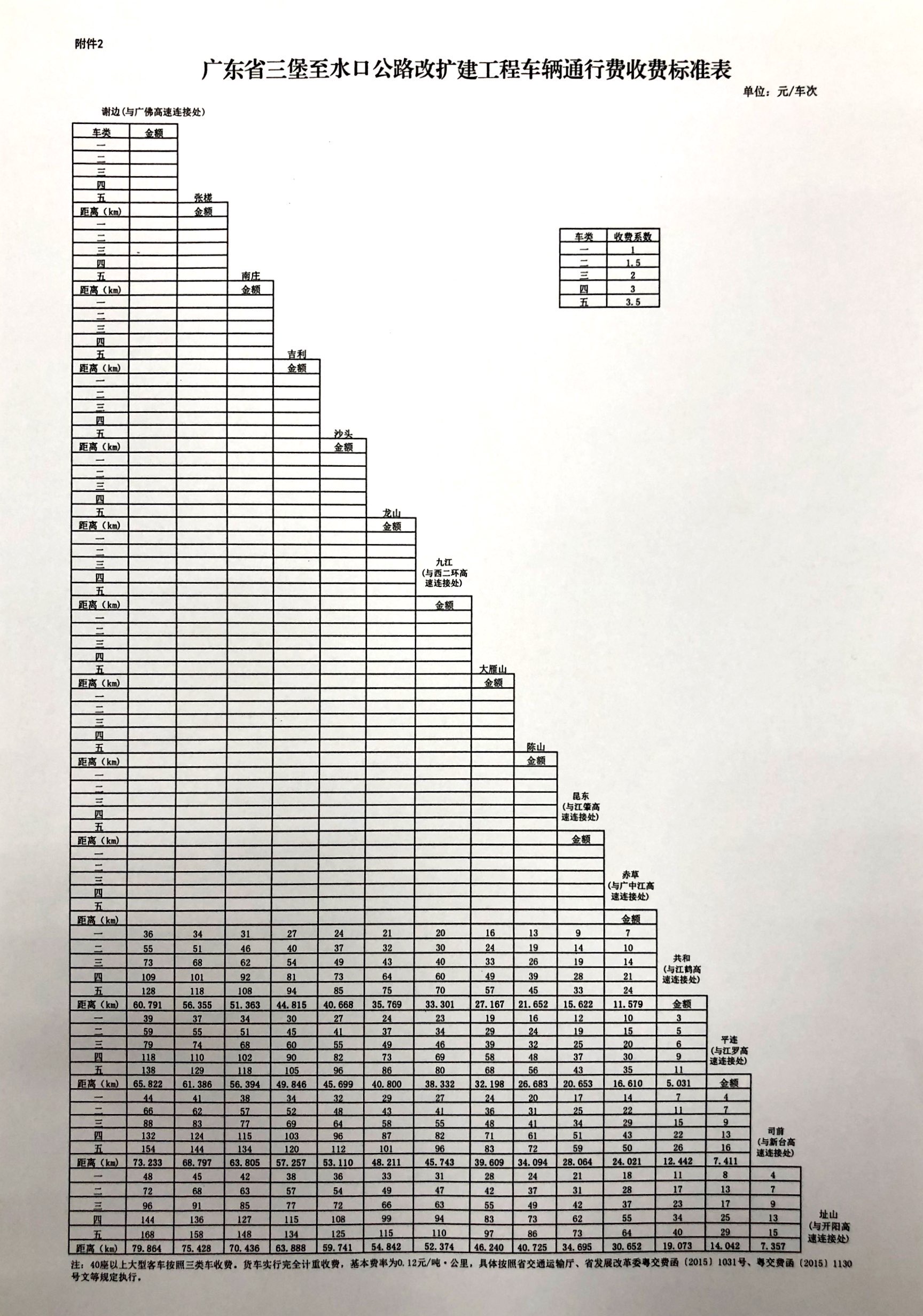 2.廣東省三堡至水口公路改擴建工程車輛通行費收費標準表