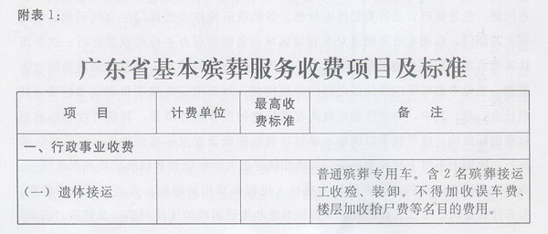 附表:1.廣東省基本殯葬服務(wù)收費(fèi)項(xiàng)目及標(biāo)準(zhǔn)。