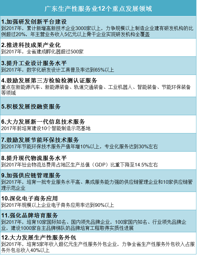 廣東發(fā)力生產(chǎn)性服務業(yè)12大重點領域