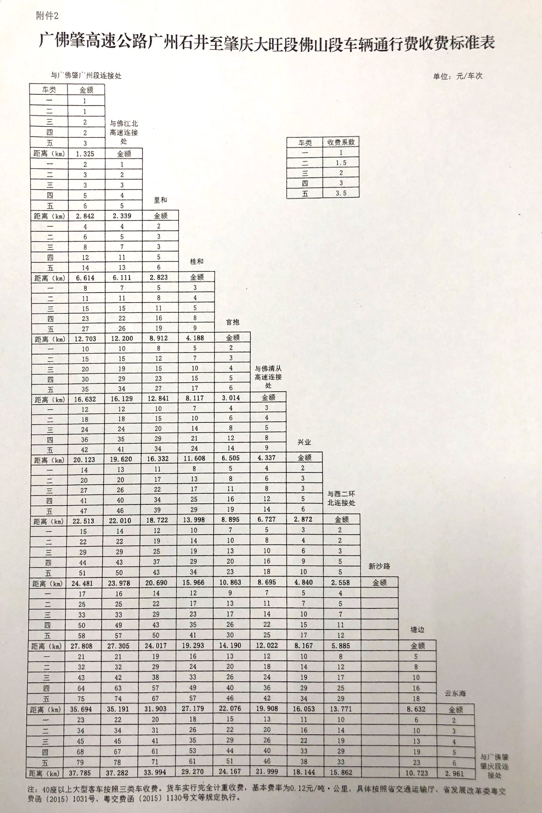 2.廣佛肇高速公路廣州石井至肇慶大旺段佛山段車輛通行費收費標準表